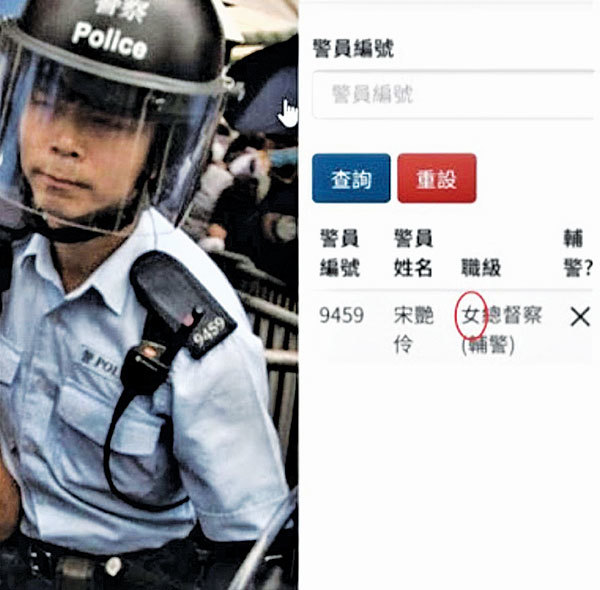 6月12日,有推特網友上傳圖片展示,用一名參與暴力清場的「男警察」肩上的警號,在香港公開警務系統中查詢,結果該警號的真正擁有者是一名女總督察。因此懷疑這名「男警察」是中國大陸派來的軍警,身上的警服只是仿冒。