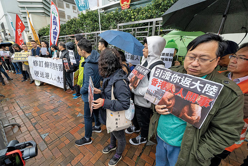 給中聯辦主任王志民下死命令必須盡快修訂逃犯條例的,很可能就是韓正本人。圖為香港多個民主派政黨及民陣3日10日遊行到中聯辦抗議,反對修改《逃犯條例》。(李逸/大紀元)