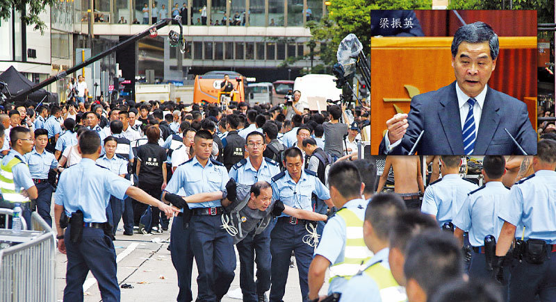 五年前,江曾在香港的代理人、時任特首梁振英,妄圖利用占中事件重演天安門「六四」大屠殺,再藉機把習趕下臺。(新紀元合成圖)