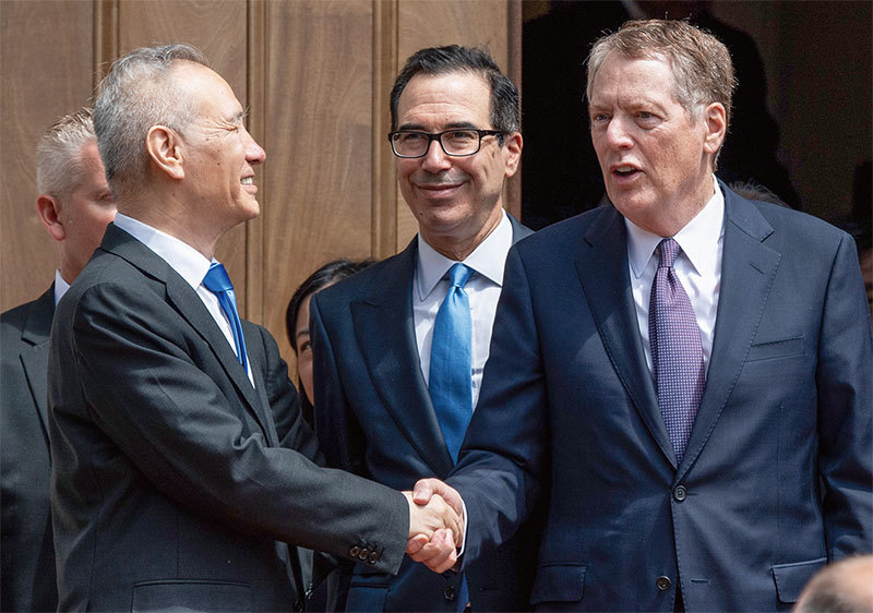 美國貿易代表萊特希澤(右)重申美國立場並未改變,仍將要求中方進行結構改革。圖為5月10日中方談判代表劉鶴(左)赴美進行第十一輪貿易磋商。(Getty Images)