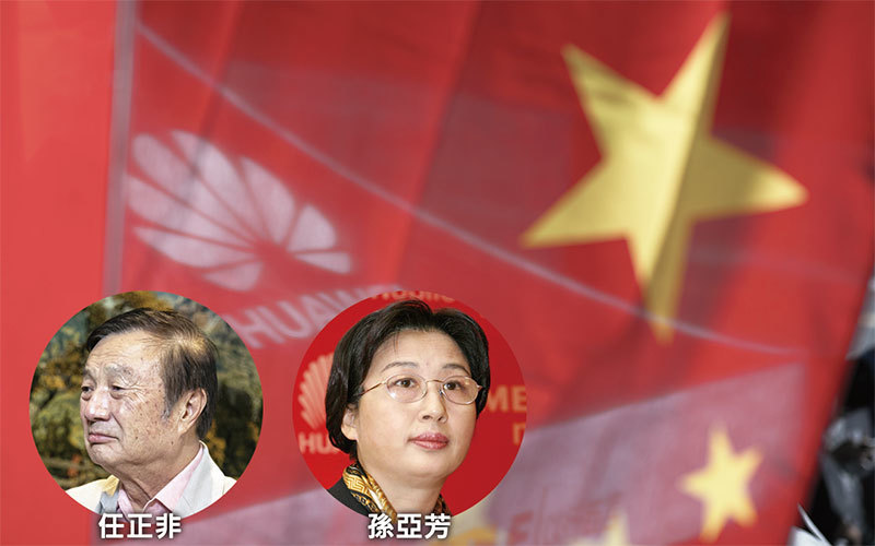 華為創辦人任正非曾任中共軍方團職軍官;華為前董事長孫亞芳具國安背景。華為深度參與由江澤民兒子江綿恆主導的監控國民的「金盾工程」。(AFP)