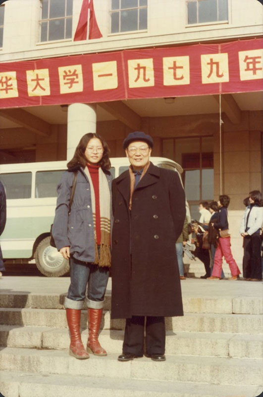 署名「草蝦NZ」的網友在推特發文披露林鄭月娥1979年與時任清華大學黨務書記袁永熙合影的照片,指其早就淪為中共特務。(推特截圖)