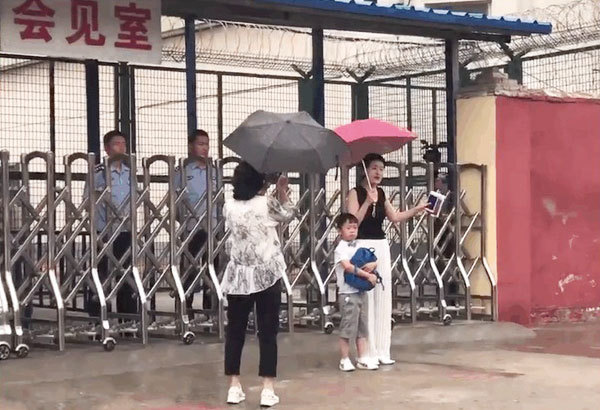 習近平赴G20峰會之際,6月28日下午,李文足(右一)經歷近四年的艱苦抗爭,終於會見到了丈夫。(視頻截圖)