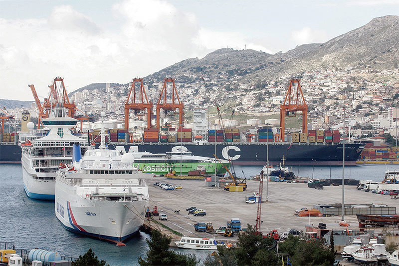 中共透過控制港口把全球供應鏈武器化,如中遠集團已經控制了希臘的比雷埃夫斯港(圖),透過使用華為的IT系統,未來恐限制美國海軍入港。(Getty Images)