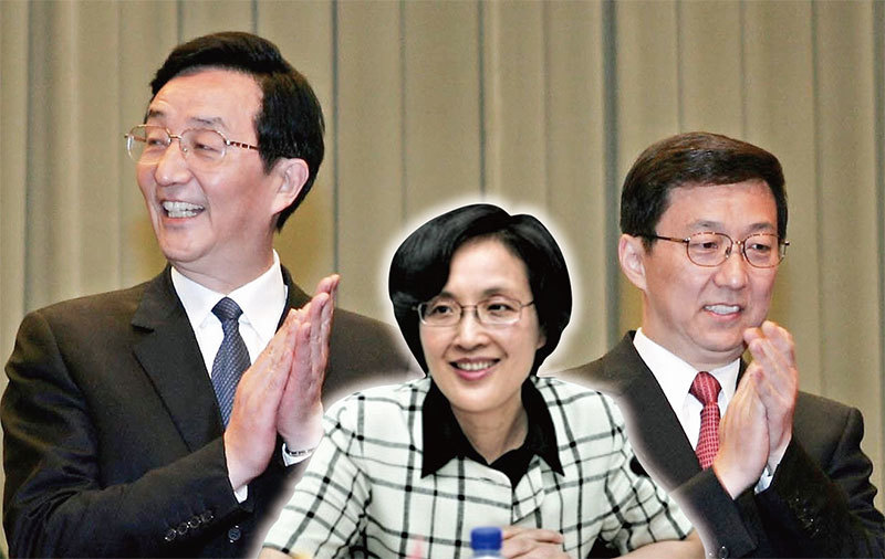 韓正(左)與陳良宇(右)有仇,還可追溯到早年兩人爭奪美女下屬鍾燕群(中)的醜聞。(新紀元合成圖)