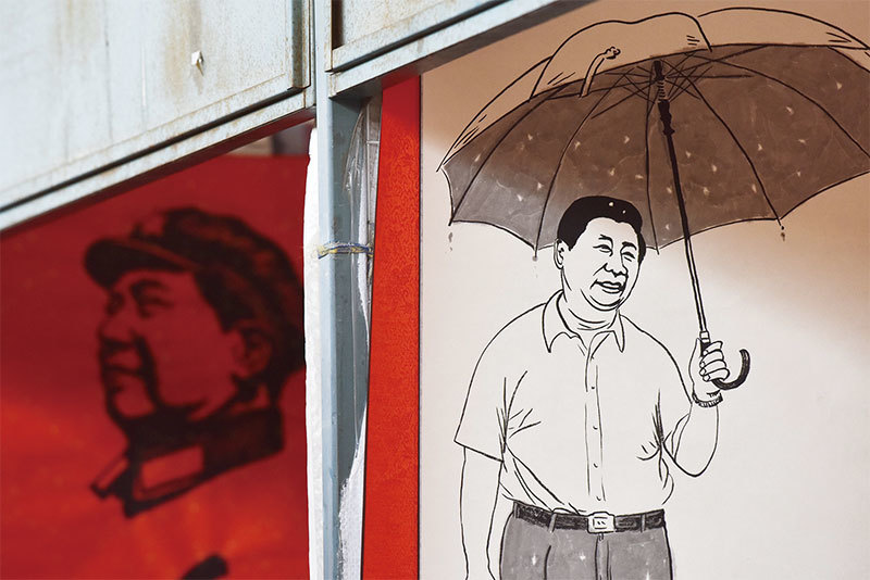 習近平遭遇種種麻煩的根源在於中共的邪惡專制,共產黨必遭報應和清算。籲習掙脫中共的束縛,讓中國人民享受自由。圖為2018年2月26日,習近平和毛澤東的海報出現在北京一個市場上。(Getty Images)