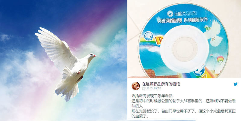 中共1999年7月開始鎮壓法輪功後,法輪功學員就主動對大陸人揭露中共謊言、講真相。圖為近日一網友分享他早期取得翻牆光碟的經歷,引發其他網民讚賞法輪功學員是推牆先鋒。(新紀元合成圖)