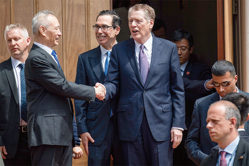 2019年5月,在習近平的指導下,劉鶴(左)已經與美國貿易代表幾乎談妥95%的情況下,北京突然刪減塗改,使美中談判人員10個月的努力功敗垂成。(AFP)