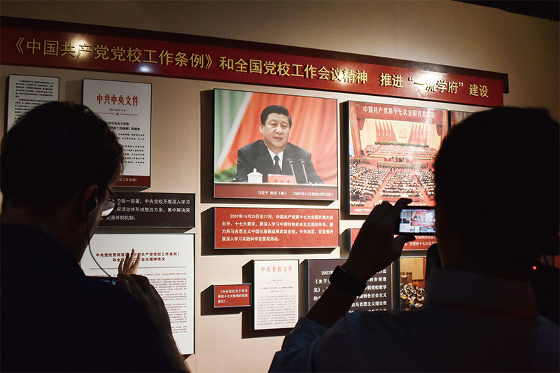 中美貿易戰形勢險峻、中國經濟形勢嚴峻,習近平不斷敲警鐘仍然是警告全黨,緊緊圍繞習核心,不要對習核心有任何的懷疑,這樣才能共度難關。(AFP)