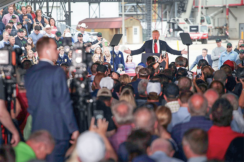 農民是特朗普政治支持的一個重要來源,北京意圖打擊他的農業票倉。圖為特朗普6月11日在關鍵農業州愛荷華州參觀再生能源廠時發表講話。(Getty Images)