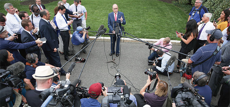 白宮首席經濟顧問庫德洛說,美中貿易關係極不平衡,因此美方不會與中方簽「平衡」協議。圖為庫德洛6月18日在華府特區向媒體講話。(Getty Images)