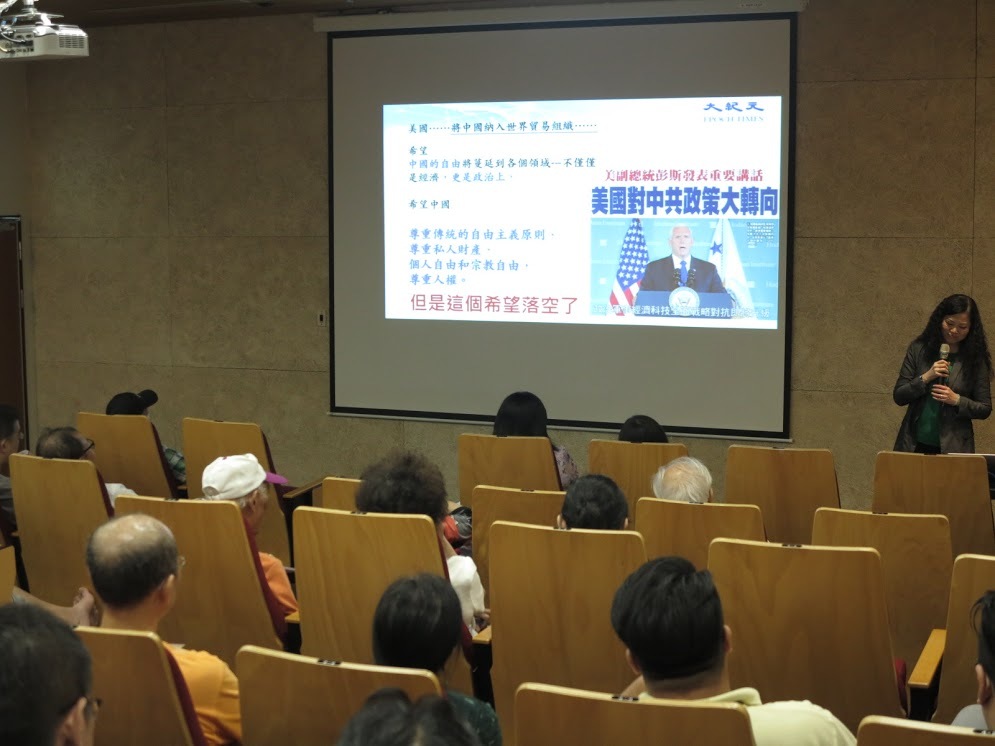 蔡燕玟女士並以多項事例,說明美中貿易戰局的變化,雙方政策的大轉彎,來自中共多年來的不能信守承諾,以及美國總統明確了普世價值無法撼動的堅決立場。