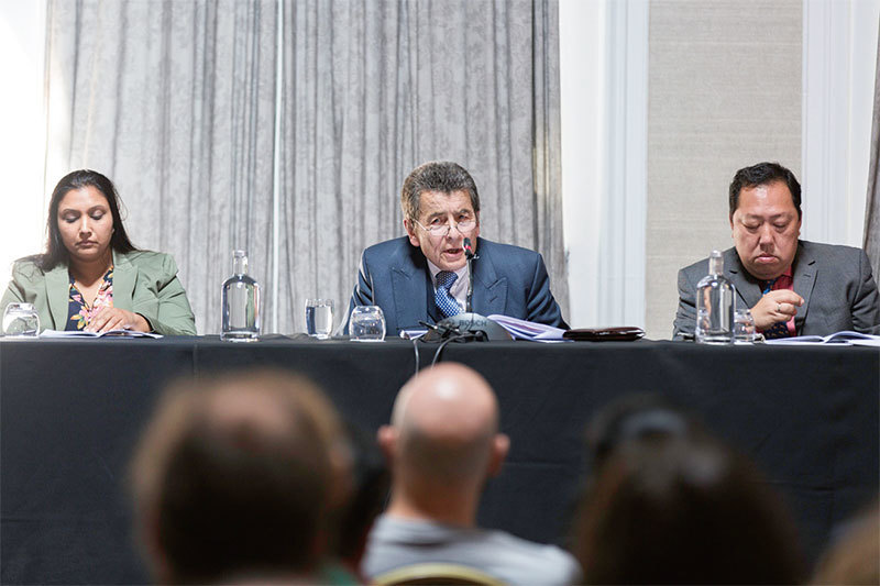 6月17日,英國大法官傑弗里.尼斯爵士(中)主持的人民法庭判定,中共犯有危害人類罪。(冠奇╱大紀元)