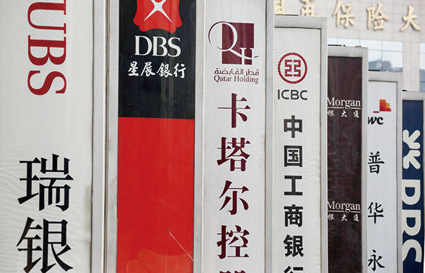中國市場對外資開放不足,是中美貿易戰的成因之一。如今北京推出11項新的金融開放措施,顯然意在緩解批評聲浪。圖為北京金融大街上的銀行招牌。(大紀元資料室)