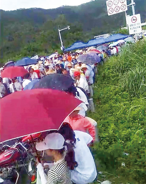 中共害怕香港民眾的抗議引發大陸民眾共鳴,從而效仿。圖為6月22日,廣東雲浮市數千村民抗議建垃圾焚燒發電項目,與警察發生肢體衝突。(視頻截圖)