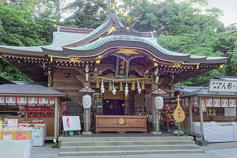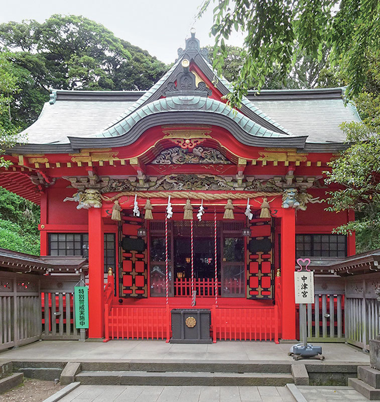 江島神社是三間神社的總稱,祭拜著三位姐妹女神,分別是邊津宮——么女田寸津比賣命;中津宮——排名中間的市寸島比賣命;奧津宮——長女多紀理毘賣命。