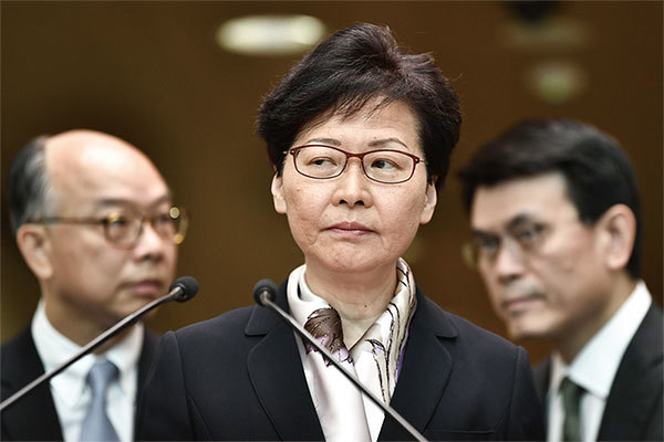 5日上午,香港特首林鄭月娥召開國際記者會,仍堅持強硬立場,除了譴責反送中示威者的「暴力抗爭」,更質疑三罷行動者「將害慘香港經濟」,「表達意見就該和平理性,不該影響其他打工仔上班的權利!」還警告示威高喊「光復香港,時代革命」是嚴重挑戰國家主權及「一國兩制」底線。