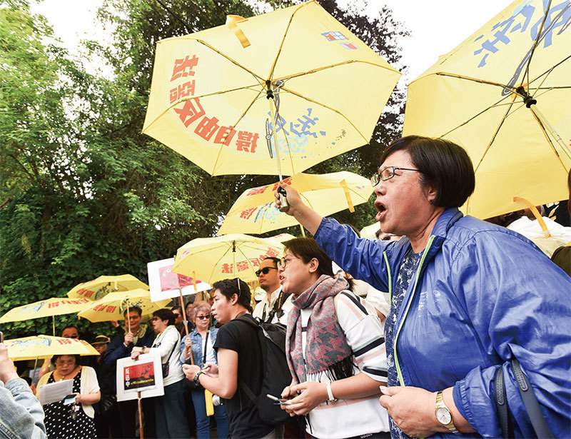 在遮打花園舉行的香港媽媽反送中集會上,香港著名社運文化人金佩瑋博士將韓國光州事件的歌曲填上中文歌詞,並用廣東話唱出了《雨傘進行曲》。相對前面兩首英文歌,《雨傘進行曲》帶點小調的憂愁,但歌詞同樣鼓勵人心,很適合中老年人。