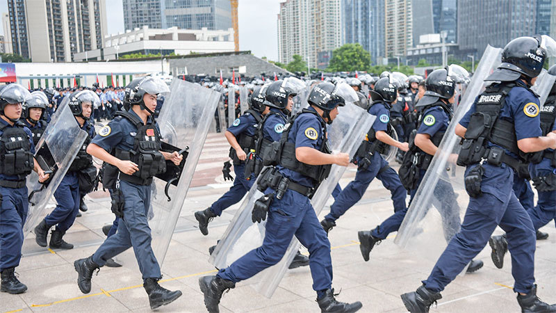 8月8日,中共公安部部署在全境公安機關開展全警實戰大練兵。外界認為恐嚇香港意味濃厚。圖為8月6日中共公安在深圳的一次演習。(AFP)