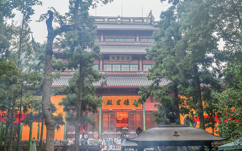 駱賓王落髮為僧,並遍遊各處名山,晚年來到靈隱寺。圖為靈隱寺大雄寶殿。(Tyg728/維基百科)