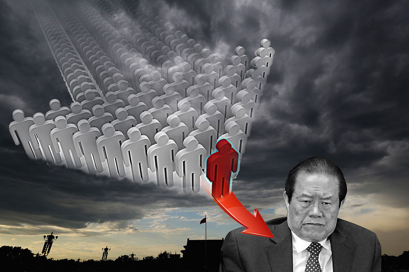 周永康是中共政法系統最大的腐敗分子。在周的帶領下,中共政法系統迅速走向全面、徹底的腐敗,很難找出一個不貪的官員來。(大紀元合成圖)
