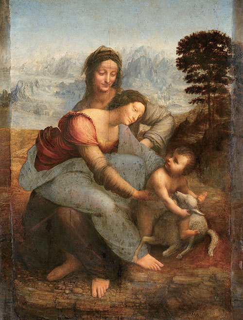 列奧納多.達芬奇的〈聖母瑪利亞和聖嬰與聖安妮〉,法國盧浮宮藏。(公有領域)