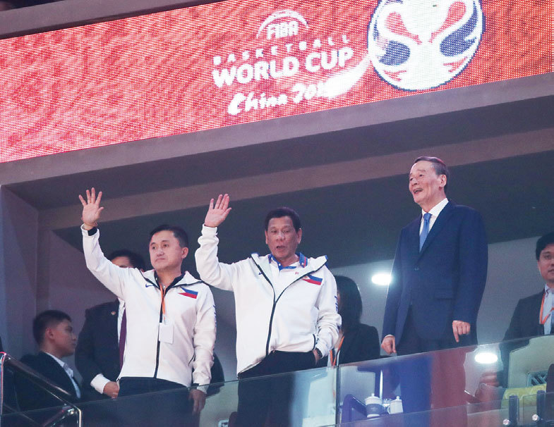 8月29日至31日三天,習近平派王岐山到廣東「調研」,並親自向林鄭傳達了習近平的密令。圖為王岐山(右)8月31日在佛山會見菲律賓總統後觀看國際籃聯籃球世界盃賽。(Getty Images)