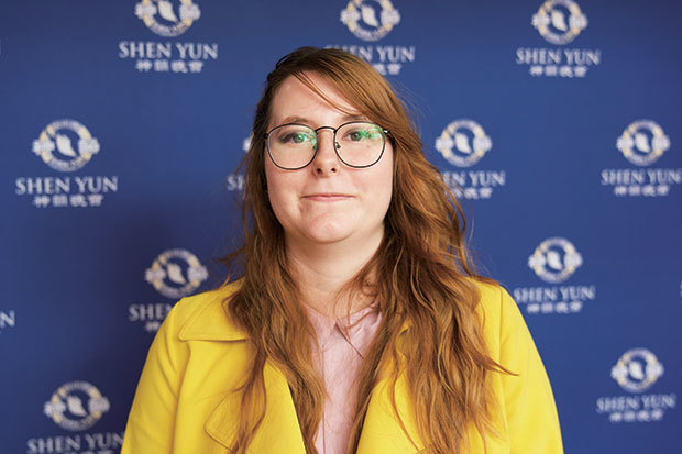 5月2日下午,紐約數字媒體公司Big Machine Media營銷總監、時裝設計師Alexandra Nyman為神韻音樂的頂尖藝術所傾倒。(新唐人電視臺)