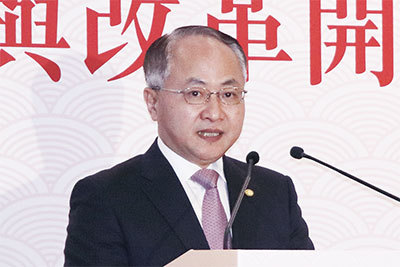 2017年第一天,香港中聯辦主任張曉明高調接受中共央視專訪,大擺其所謂的「反港獨」功績,並偷換概念稱獲習近平支持。(蔡雯文/大紀元)