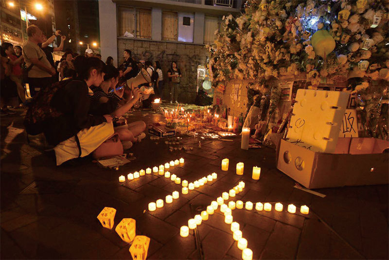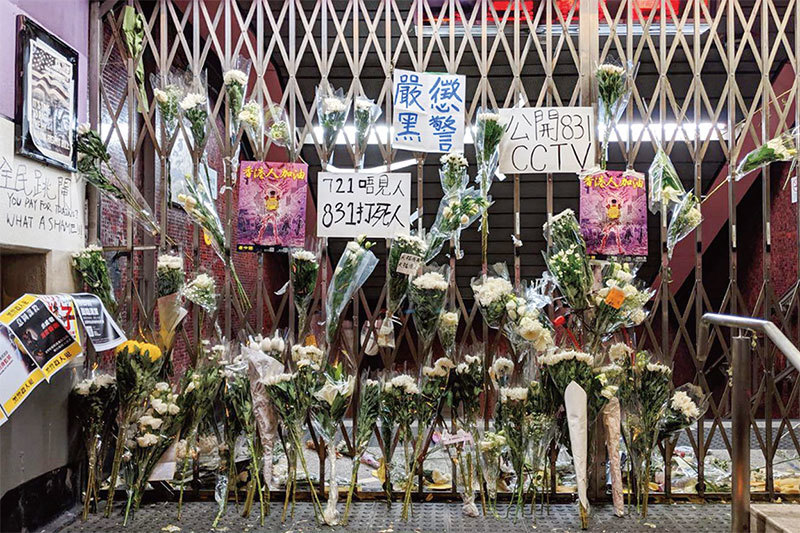 儘管港鐵及親共勢力多次拆毀太子站出口市民拜祭的鮮花,市民很快又將花壇還原。