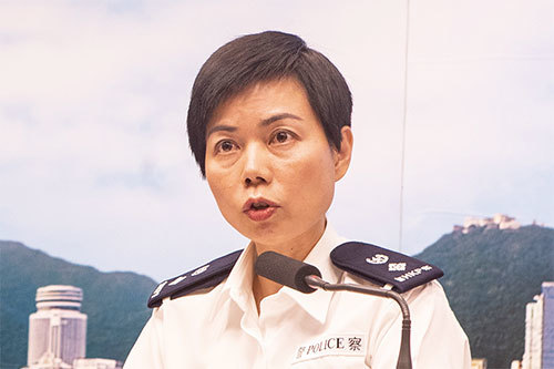 香港警務處、消防處、醫管局及港鐵公司就8.31事件舉行記者會。圖為警察公共關係科高級警司余鎧均。(余鋼/大紀元)