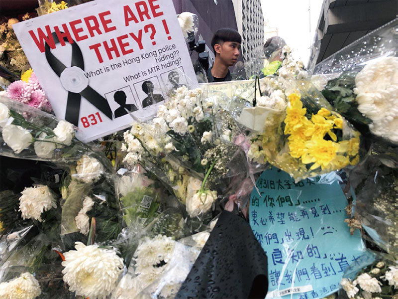 8.31事件後,有多名港人表示,他們親人和朋友在「8.31事件」後,不知行蹤,失聯了。連日,不斷有港人在事件的標誌性場所――太子站獻花燒紙,祭奠死者。9月6日,數百民眾前往太子站跪求港鐵公布8.31監控錄像,但未得港鐵回應。
