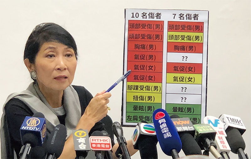 此外,9月10日警方在發布會上稱,有3名傷者從油麻地搬出,但是8.31晚現場急救人員證實,當時地鐵裡有4名傷者,其中一名是重傷,流血不止躺在地上,另一名傷者到底去了哪裡?