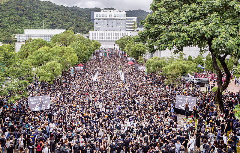 大陸人致信香港青年學子:「你們沒有被灌輸暴政下虛假的歷史謊言和毒素洗腦,是可以在未來之中國擔當重任的民族希望!」圖為9月2日香港中文大學百萬大道罷課集會活動。(余鋼/大紀元)