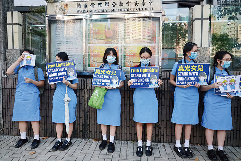 香港油麻地真光女書院學生及校友參與聯校人鏈。(王偉明/大紀元)
