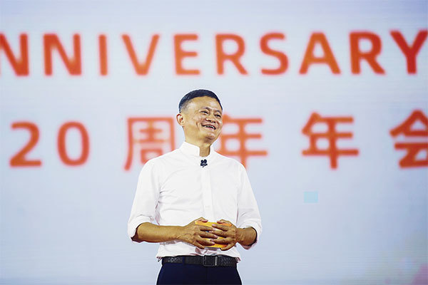 9月10日晚,阿里巴巴20周年年會在杭州奧體中心舉行。馬雲在會上正式宣布卸任董事長。當日是馬雲55歲生日,也是他創辦阿里巴巴20周年。