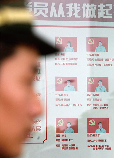 包括娃哈哈等杭州100家重點企業,成為「第一批」中共派駐官員的私企。圖為2007年杭州娃哈哈工廠張貼紅色宣傳。(AFP)
