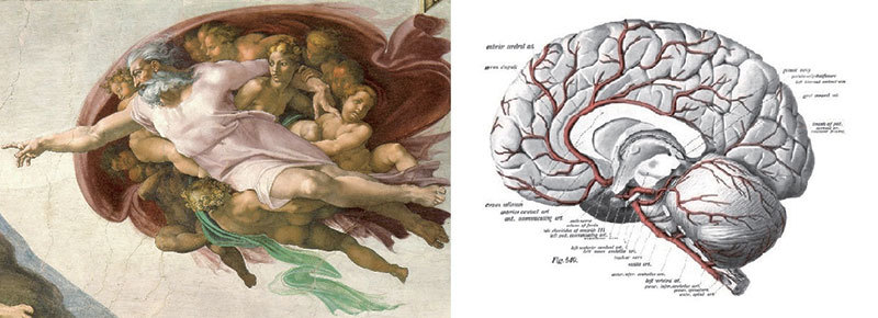我不完全相信米開朗基羅悄悄將大腦截面放在神的位置上;但假如他真是這樣畫的,我想也是出於同樣的原因:只有當我們處於放鬆且無私的心境,神才會向我們伸出援手。在我們小住於塵世的時候,能讓我們體驗神聖的是我們的思想狀態。