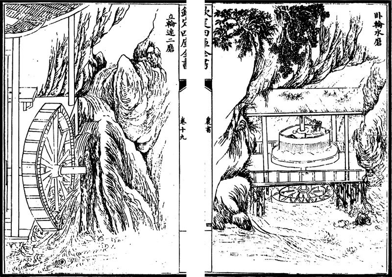 清朝《欽定四庫全書》,王禎《農書》之水磨插圖。(公有領域)