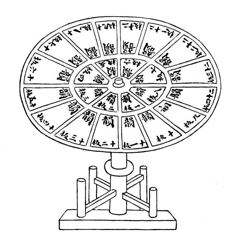 清朝《欽定四庫全書》,王禎《農書》中之「活字板韻輪圖」。(公有領域)