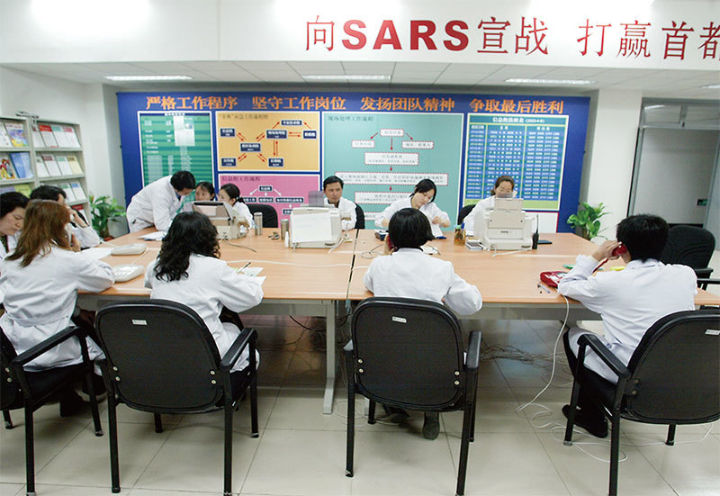 道家預言《太上洞淵神咒經》描述的第一個「末劫」時期災難事件是壬午、癸未年發生的瘟疫,對應的是2002和2003年發生的「薩斯」瘟疫。圖為2003年4月17日北京市疾控中心接聽通報SARS的電話。(AFP)