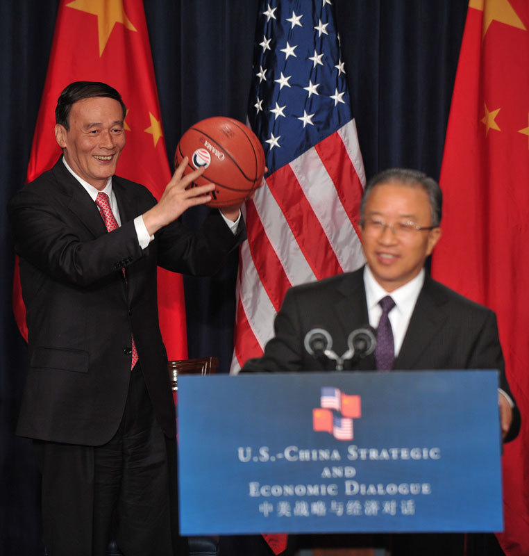 2009年1月,時任中共總書記胡錦濤訪問華盛頓時許諾向美國金融企業開放市場,允許外國公司在中國參與競標。入夏,時任美國總統奧巴馬邀請兩名中共特使進入總統辦公室,送給他們一個自己簽名的籃球。這被稱為繼乒乓外交30多年後,美中兩國的第二個蜜月——籃球外交的開始。