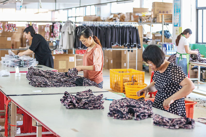 中國經濟的三駕馬車:出口、投資、消費,都大幅下降,衝擊中共政權合法性,其當前面臨的首要問題就是如何生存下去。圖為福建泉州一家生產出口服裝的工廠。(AFP)