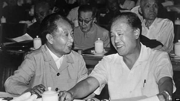 前《海南日報》總編於趙紫陽逝世10年後撰文稱:80年代經濟與政治改革的總設計師不是鄧小平而是趙紫陽。圖為1982年的胡耀邦和趙紫陽(右)。(AFP)