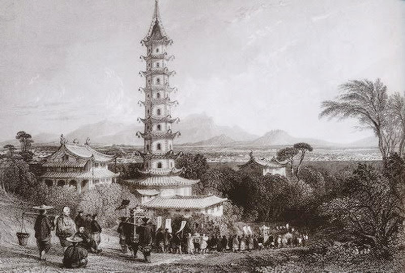 乾隆年間,英國畫家威廉亞歷山大描繪的南京大報恩寺塔。(公有領域)
