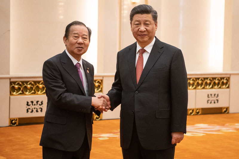 自民黨幹事長二階俊博是保守派少有的親中派,曾多次率領數百人規模的日本產業界頭面人物到訪中國。圖為2019年4月24日二階俊博訪中。(AFP)