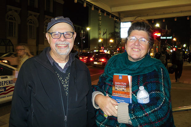 指揮家兼音樂家Arthur Comegno與友人Kathleen於10月25日晚,在波士頓交響樂廳聆聽了神韻交響樂團的音樂會。(攝影/甄秀欣)