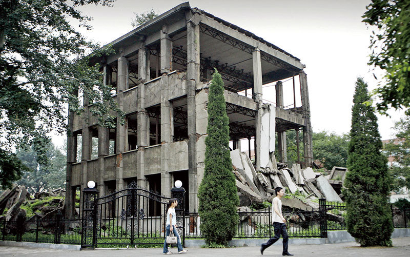 吉林隕石雨發生後,河北唐山發生20世紀全球傷亡最大的地震。圖為河北理工大學內唐山地震遺址,攝於2006年7月。(AFP)