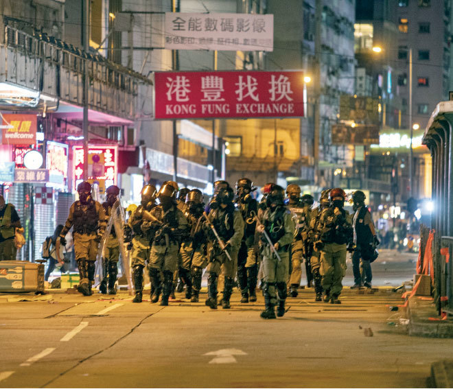 2019年11月2日,香港民間在維園舉行「112求援國際 堅守自治」大集會。圖為警察在銅鑼灣清場。(余鋼/大紀元)