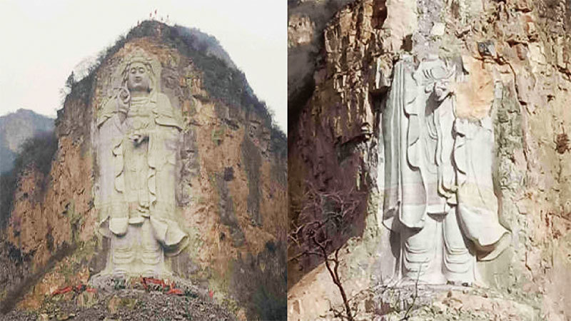 2月2日,位於河北平山縣的世界最高摩崖石刻觀音像,上半身被炸得粉碎;幾天後,為防止觀音像被重建,下半身被徹底炸毀!此後,全國各地頻傳各種荒唐至極的毀佛事件。